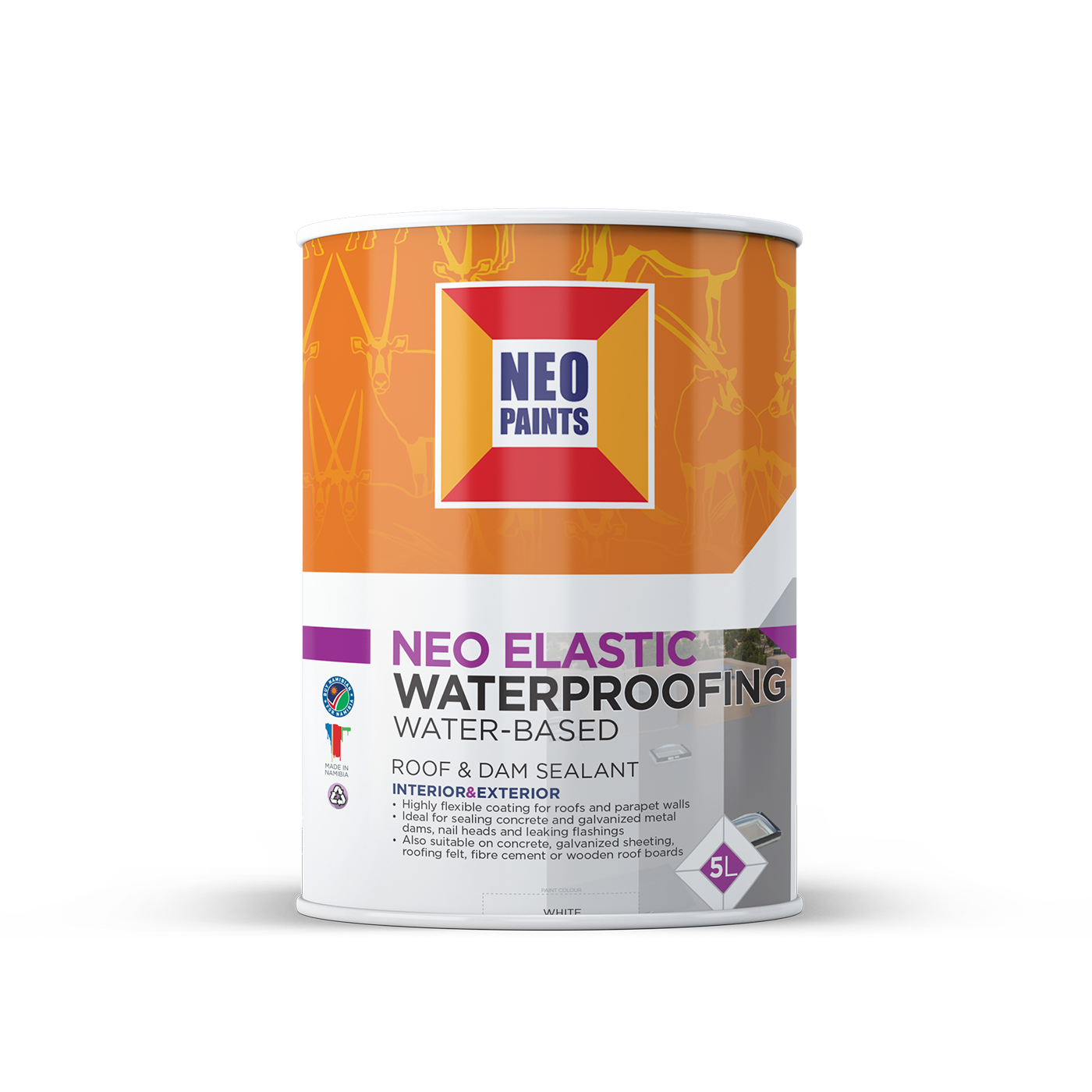 • On concrete roofs. To prepare, ensure concrete is solid and dry, remove loose0 matter and dust. Apply 1 thick coat of NEO Elastic Waterproofing. While coating is still wet, apply layer of woven fabric, such as Biddim, press firmly into the paint surface using a dry paint roller or similar tool. Apply a further 2 coats of NEO Elastic Waterproofing to saturate woven fabric substrate.