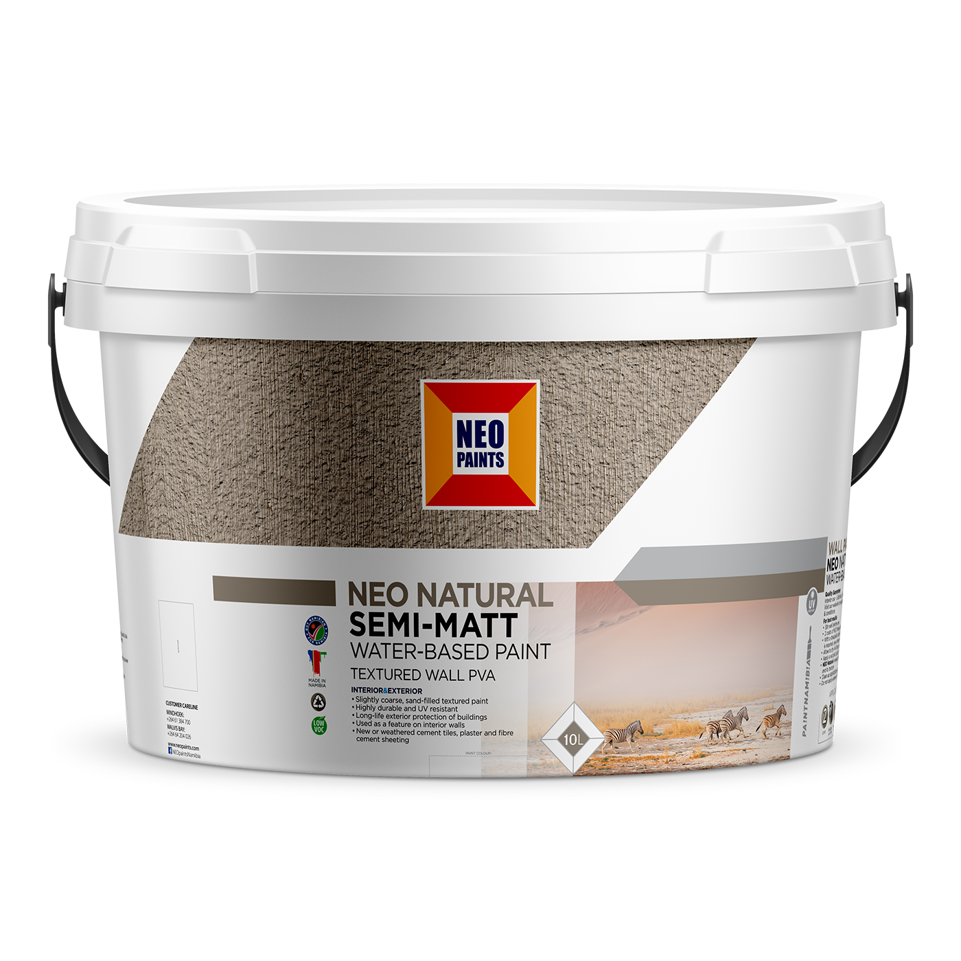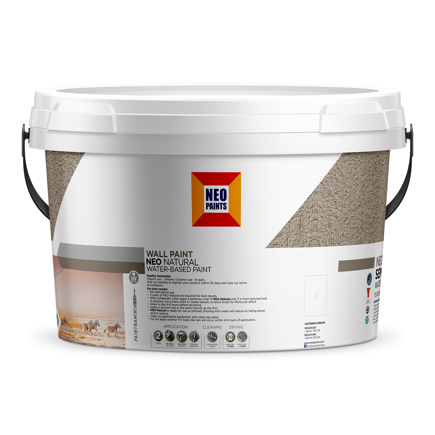 NEO Natural is a modern approach to give your exterior wall a natural, fully textured look. This semi-matt paint remains extremely durable and flexible in any Namibian weather, while the slightly coarse, sand-filled textured effect ensures for a current and modern look. Neo Natural is as its name suggests an imitation of the beautiful Namibian…