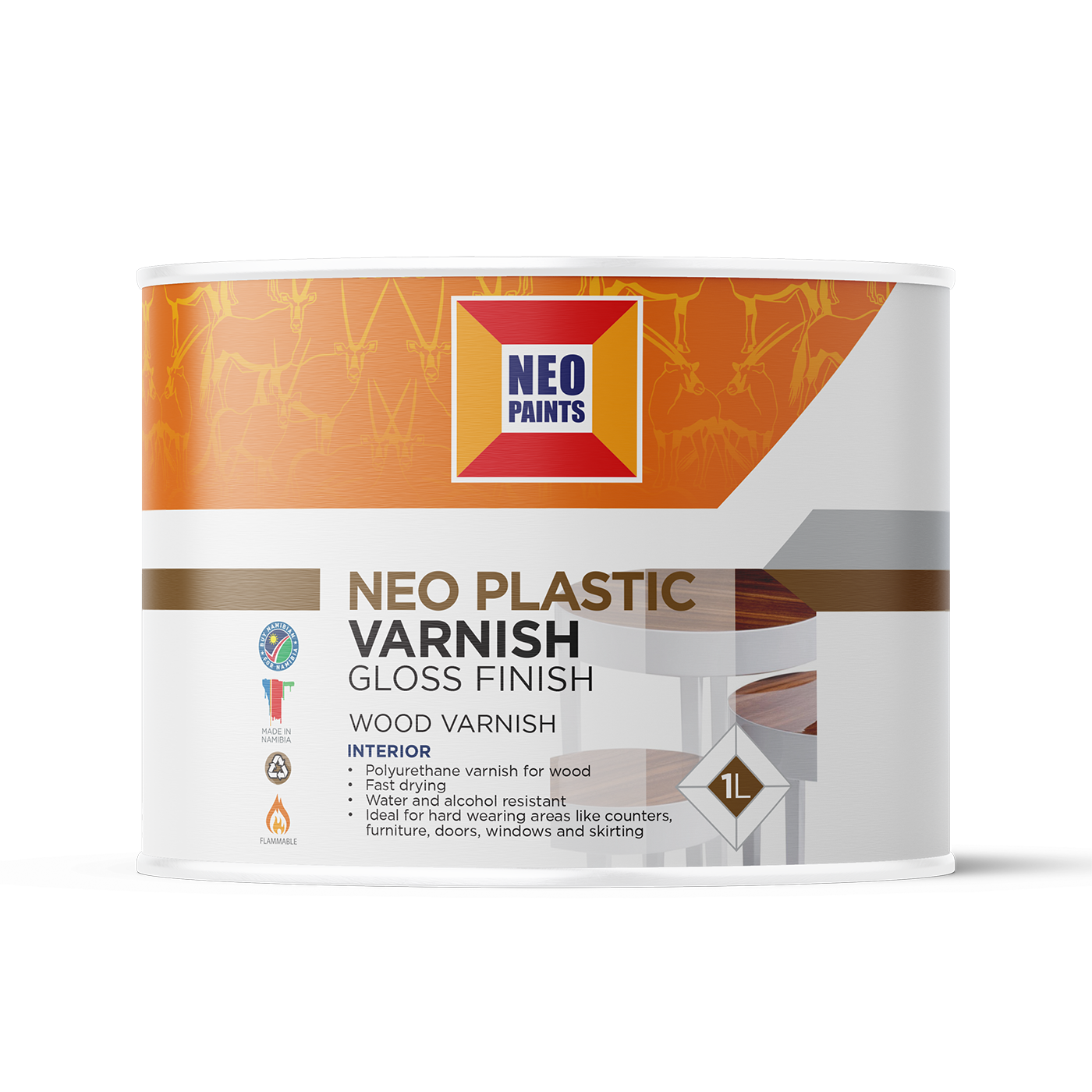 Neo Plastic Varnish is an interior water and alcohol resistant coating for new wood or existing varnished surfaces. The varnished area dries to a hard and scratch resistant surface. This is ideal for wooden furniture, windows, doors, door frames, skirting and panelling. Neo Plastic Varnish is available in a high gloss and suede finish.