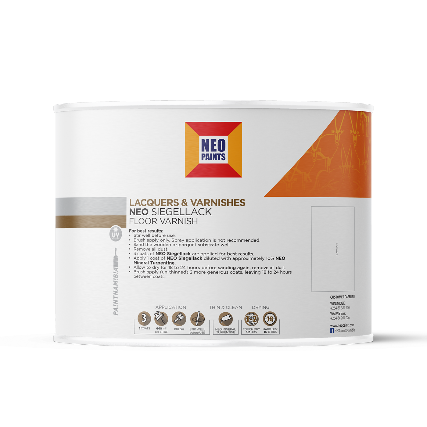 Neo Siegellack is a classic and durable interior wooden floor coating for those high traffic wooden and parquet floor areas that need a hard and flexible coating while remaining glossy and stylish. Neo Siegellack is water, alcohol and household detergent resistant with a highly washable surface, making it perfect for residential households. NEO Siegellack is available in clear only.